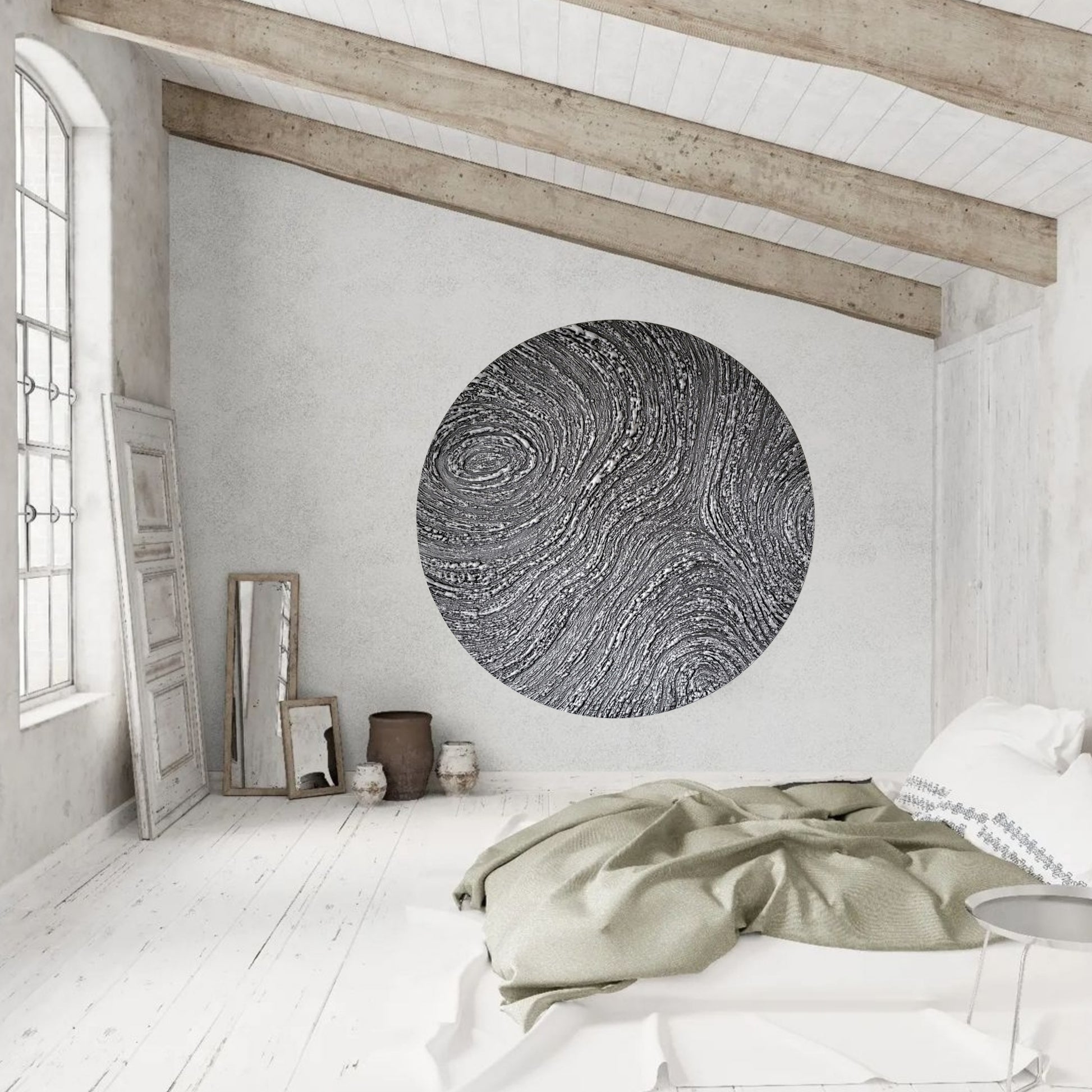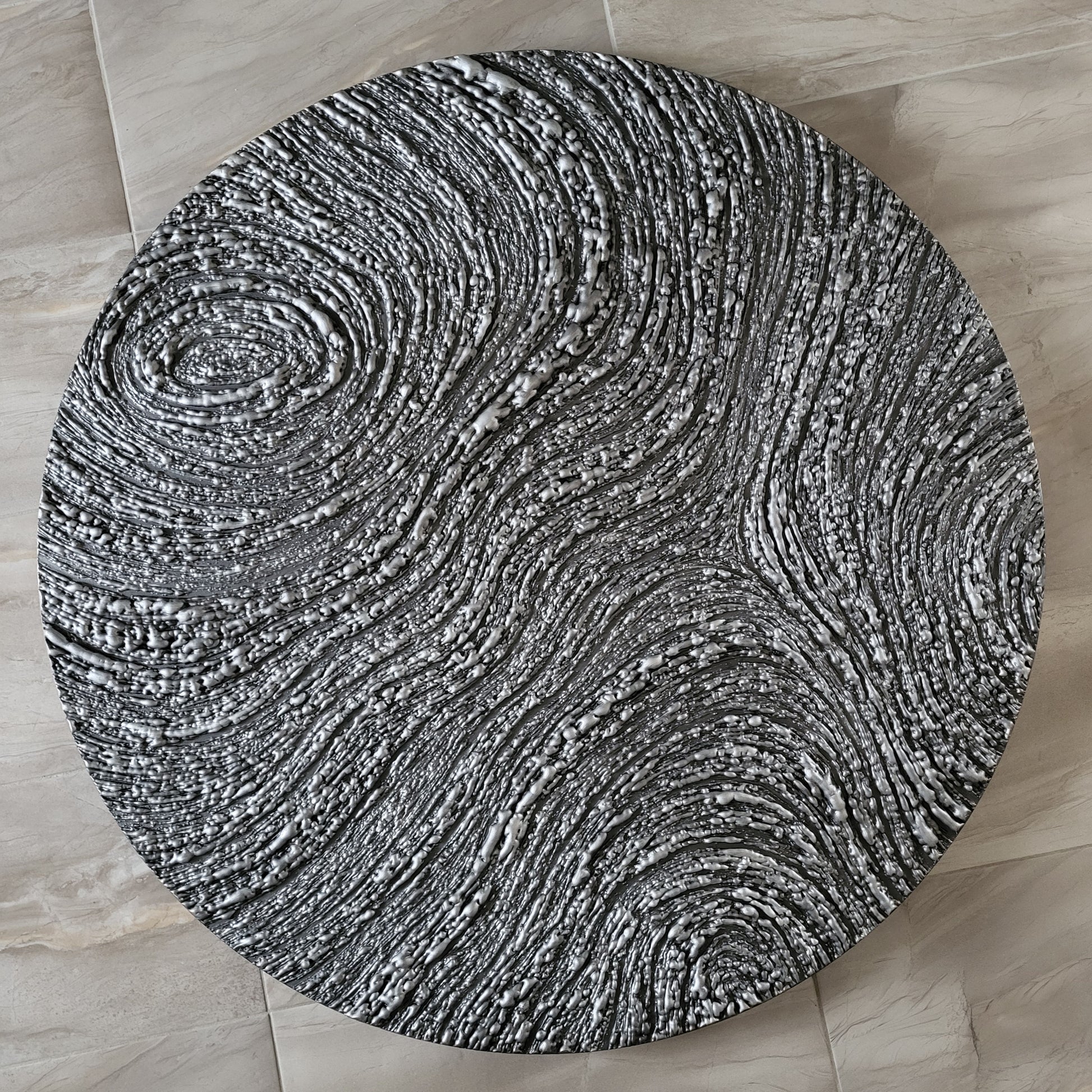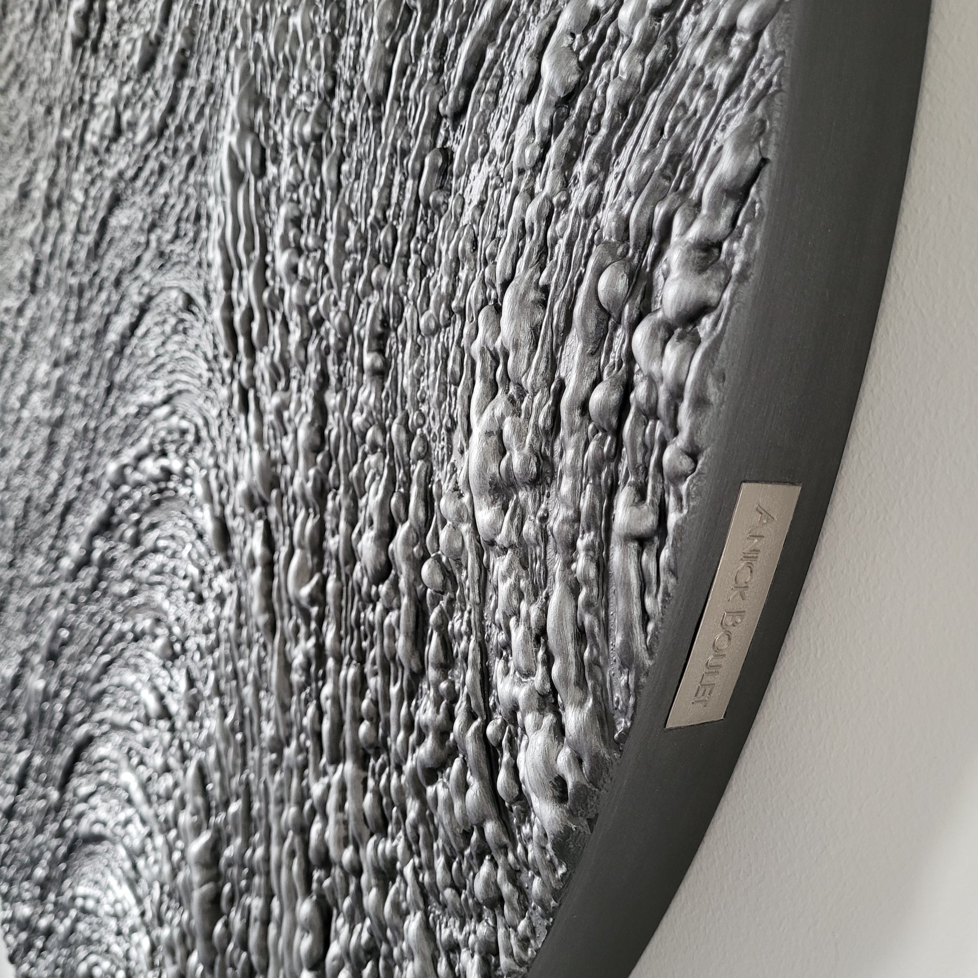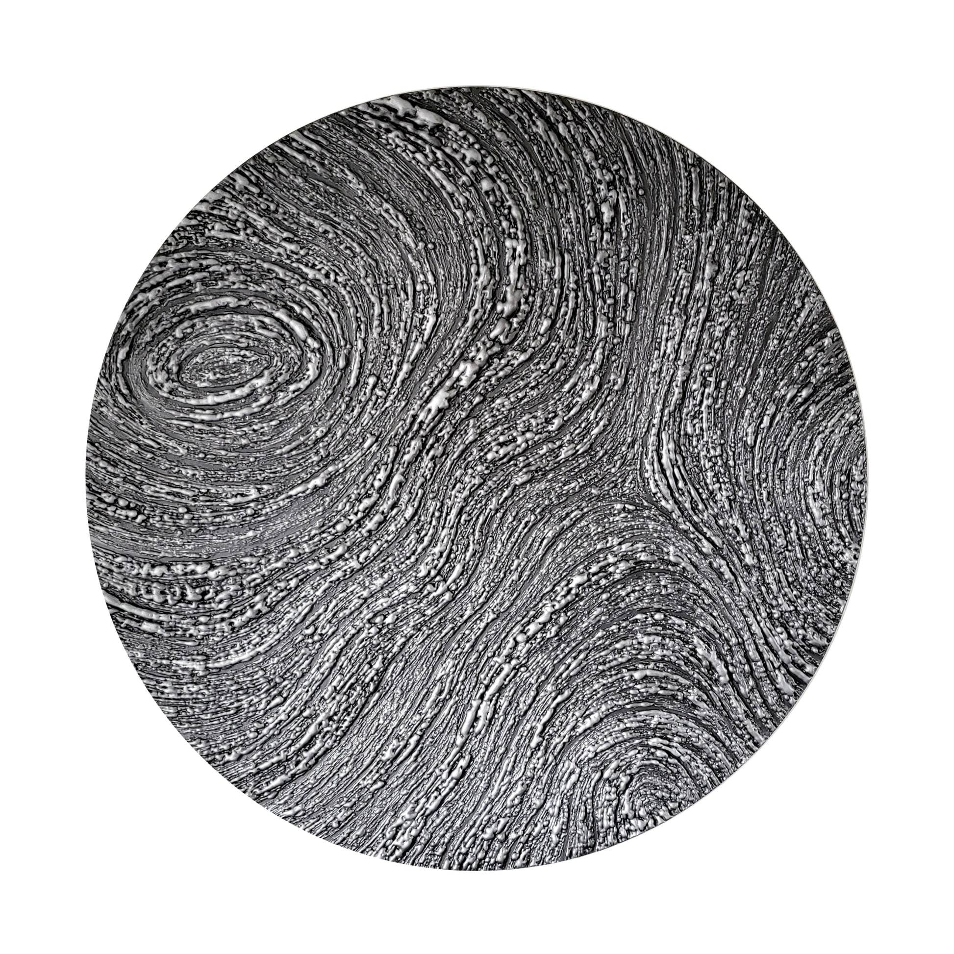 Mixed media on round gallery-style cherry wood panel made in Canada